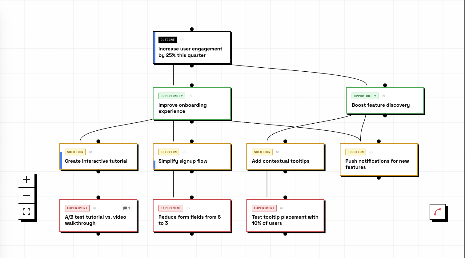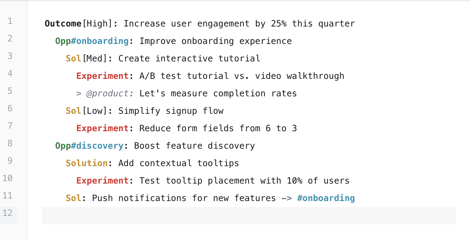 OpTree is a tool for building Opportunity Solution Trees -- a methodology for structuring product discovery. It transforms the product discovery process by creating visual trees that connect outcomes to opportunities, solutions, and experiments, all in a collaborative workspace. Inspired by text-to-diagram tools like Mermaid, OpTree brings that same philosophy to product discovery: you define your tree structure in text, and it renders in real-time as a visual diagram. Features include comments, solutions for multiple opportunities, priorities, and more. You can check out the website for more details on what it does and how it works, then use it yourself!